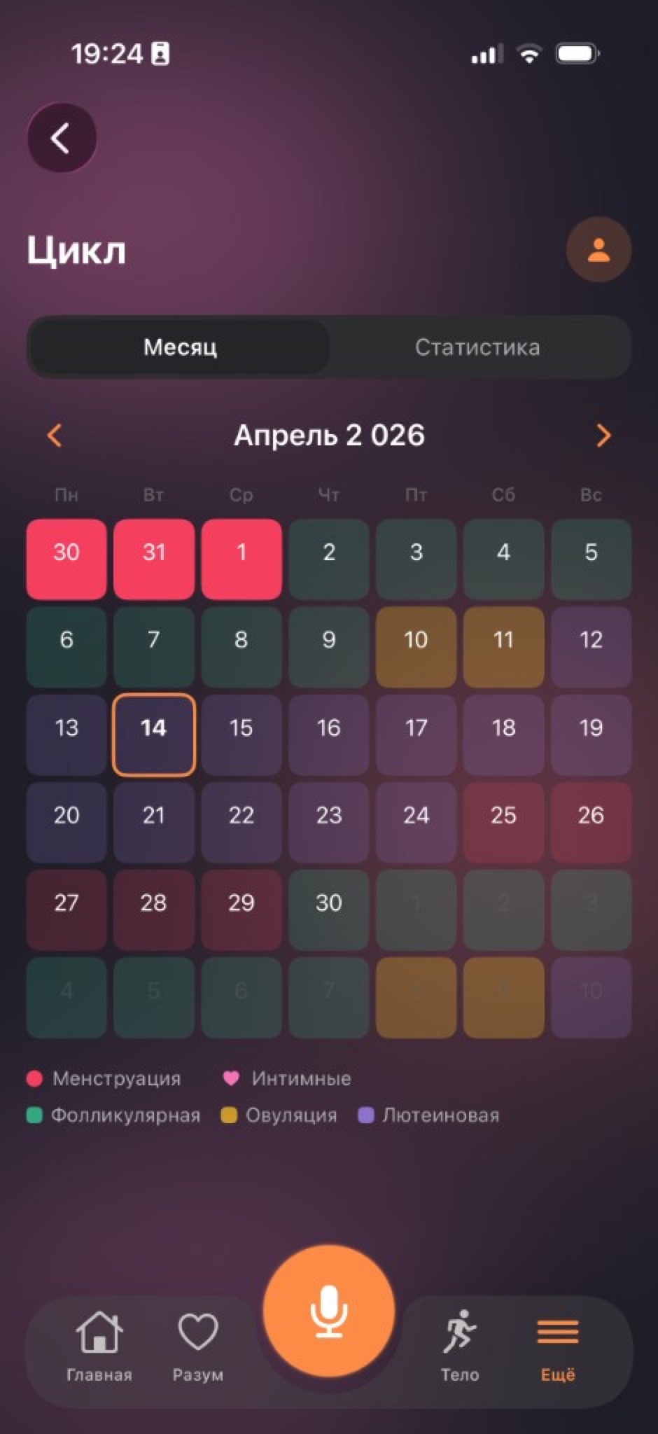 Фазы, отметки и календарь — аккуратно и приватно, с цветовой логикой фаз.