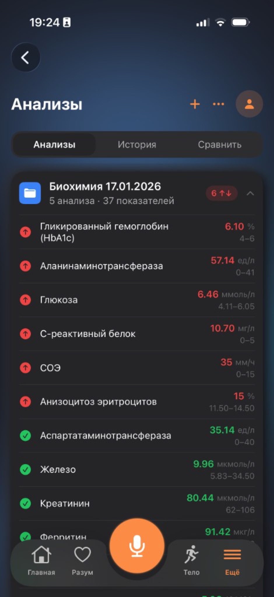 Дашборд · Голос · Apple Health · Анализы